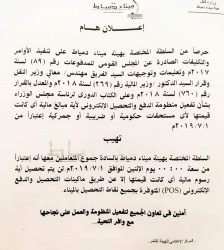 خاص بالسادة جموع المتعاملين مع هيئة ميناء دمياط بشأن التحصيل والدفع الإلكترونى ( POS ) .