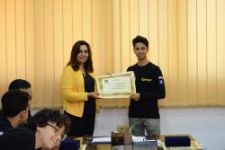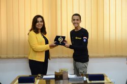 كما أهدتهم الدكتورة منال عوض شهادات تقدير و درع المحافظة تكريما لما حققوه من نجاح لرفع اسم مصر عاليا معربة عن أصدق أمنياتها لهم بمزيد من النجاحات فى البطولات القادمة كما أكدت دعم المحافظة الكامل لأبنائها المبدعين فى كافة المجالات و العمل على تنمية قدراتهم العقلية والبدنية باعتبارهم بناة الوطن مؤكدة أيضاً أنه ستقوم بترشيح الفريق بمسابقة عاصمة الابتكار بأكاديمية البحث العلمى والتى تقدم الكثير من المنح تأهل للمشاركة بالمسابقات العالمية.